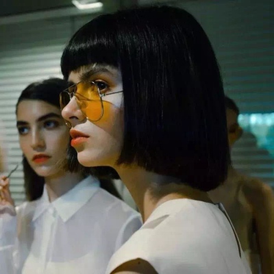 她站在一侧,手臂总是有意无意的挡在身体前面。