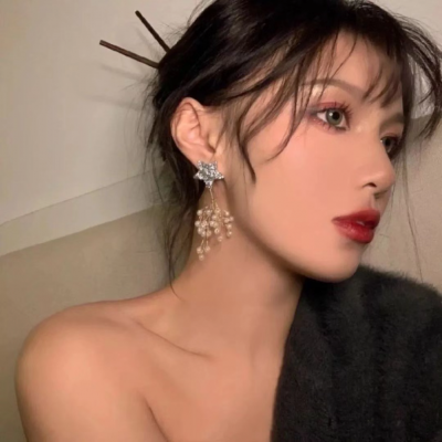 下身是红色的高跟鞋,配上一双黑色蛇纹丝袜,整个人看起来就像是从油画中走出来的女神。