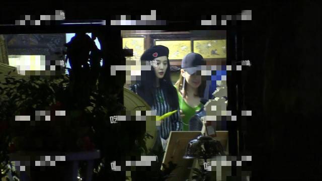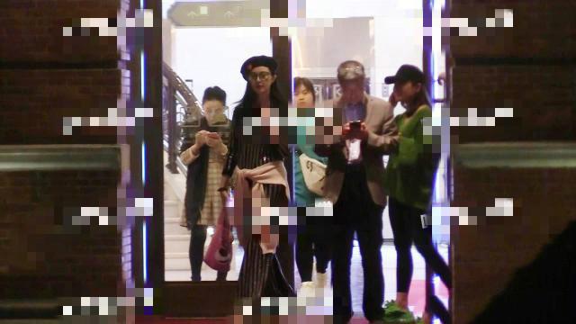 在店门口,因为光线原因照片不是很清晰,不过很明显能看出范冰冰依旧是最白的,很抢镜了!
